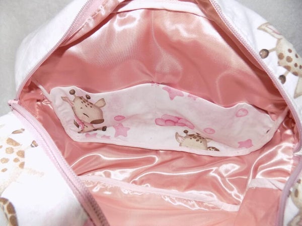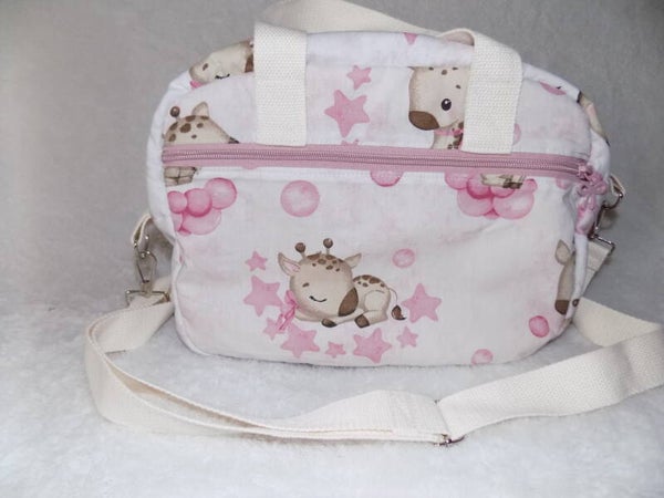 Sac à langer de voyage en tissu 100% coton certifié okéo-tex, intérieur en tissu satin rose
