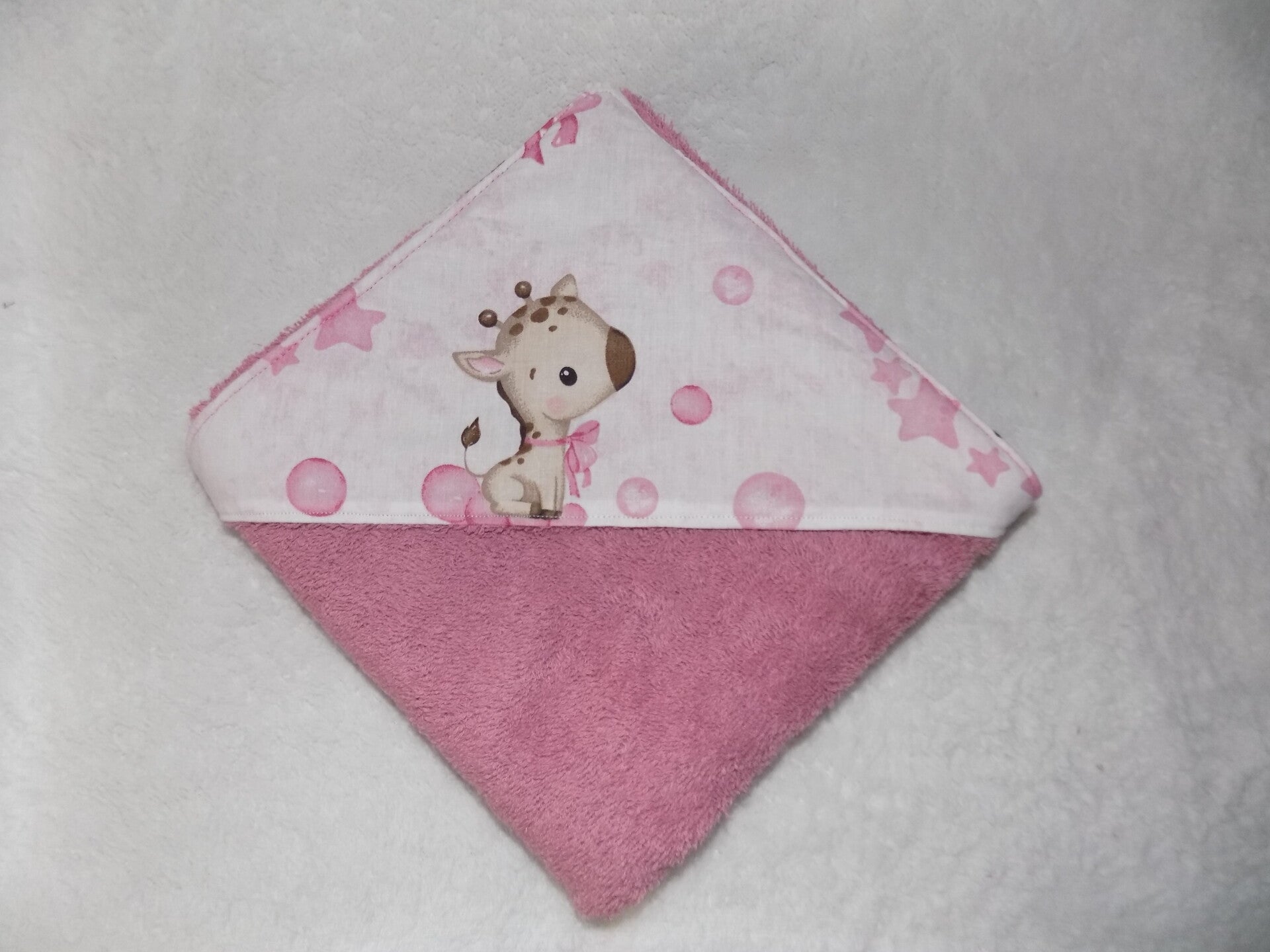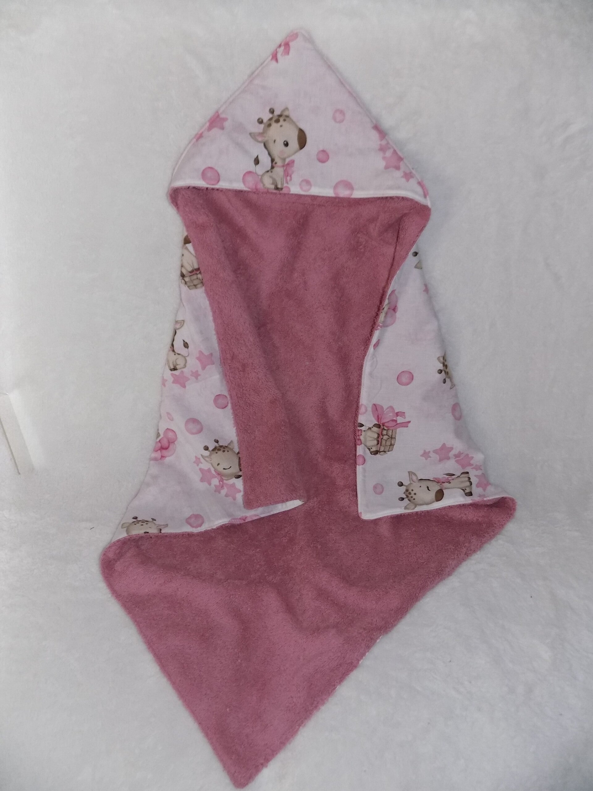 Cape de bain en tissu 100% coton certifié okeo-tex et tissu éponge de couleur vieux rose