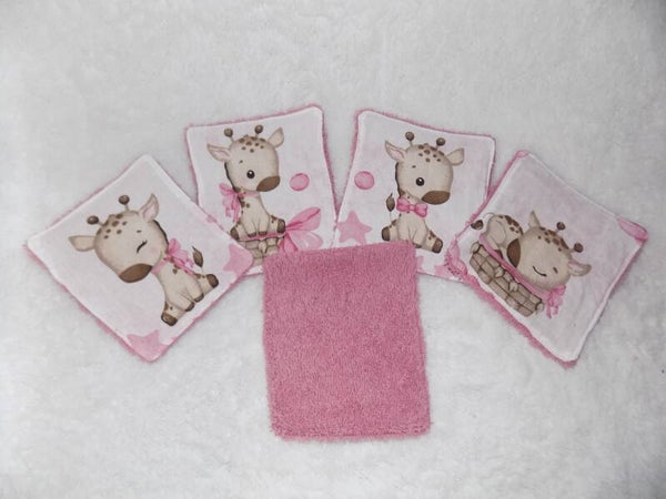 Lot de 5 lingettes lavavables en tissu 100% coton certifié okeo-tex et tissu éponge de couleur vieux rose