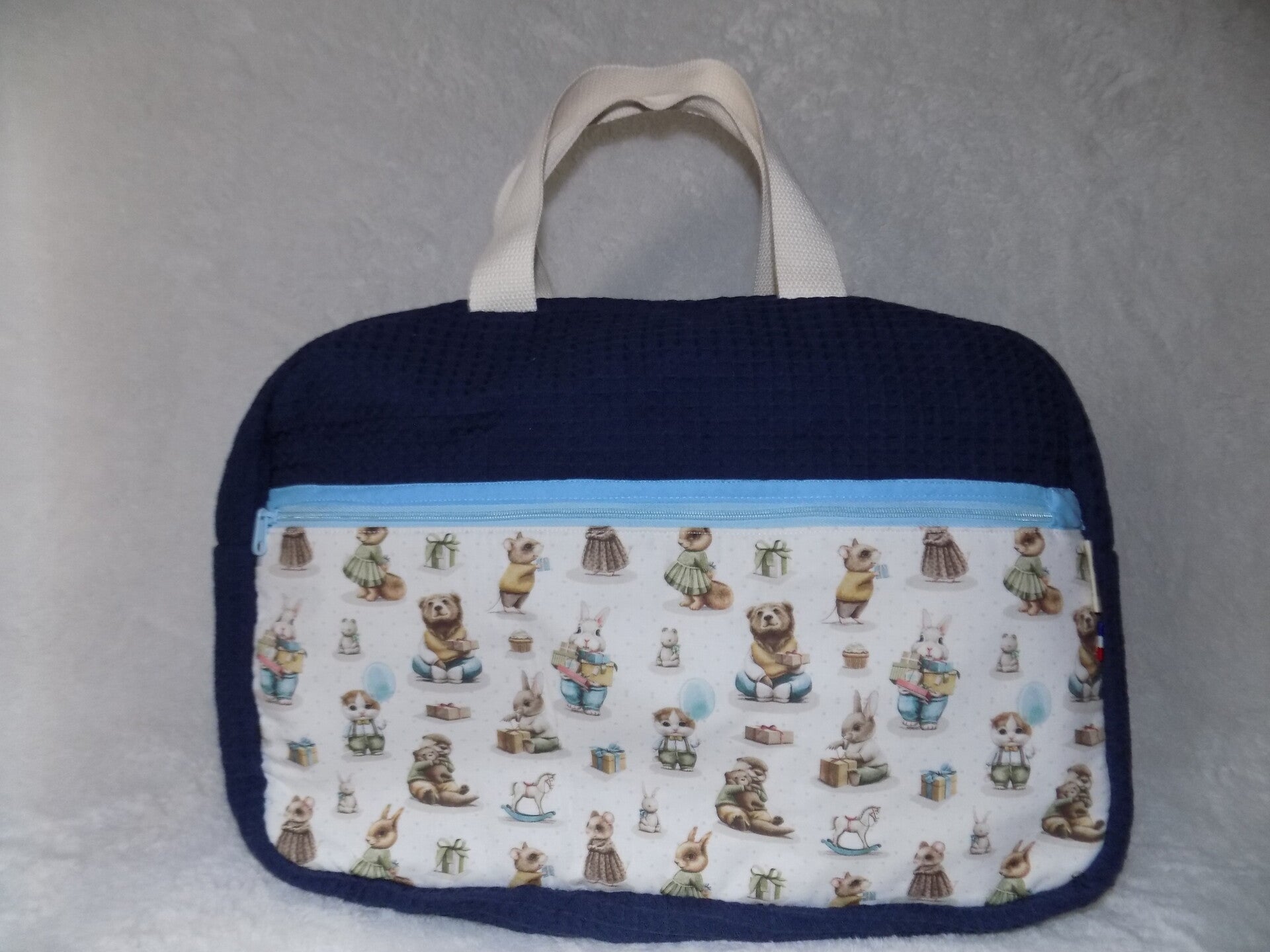 Sac à langer de grande taille en tissu 100% coton certifié okéo-tex et tissu gauffré de couleur bleu jeans