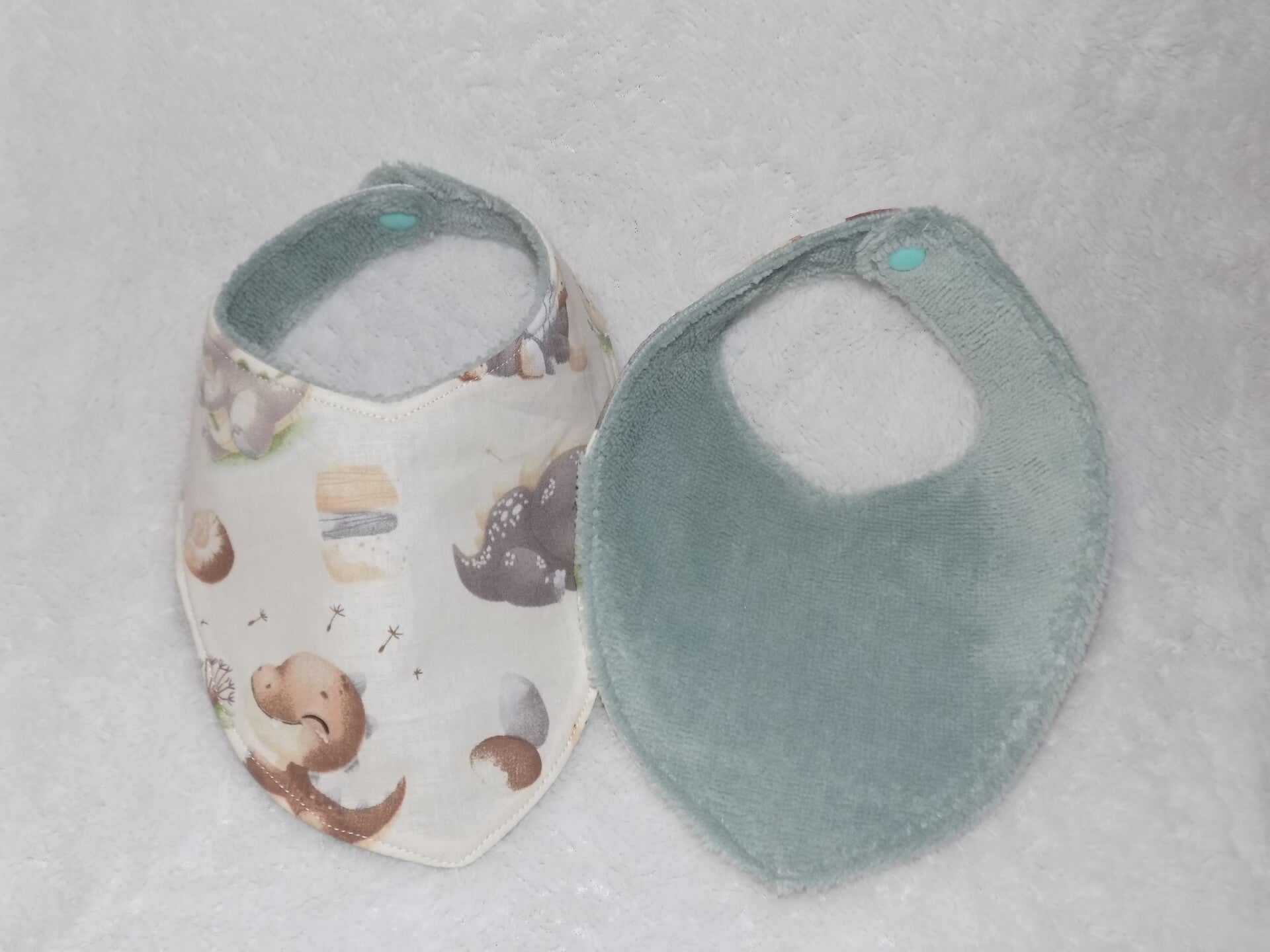 Lot de deux bavoirs bandana en tissu 100% coton certifié okéo-tex et tissu éponge de bambou de coouleur vert menthe
