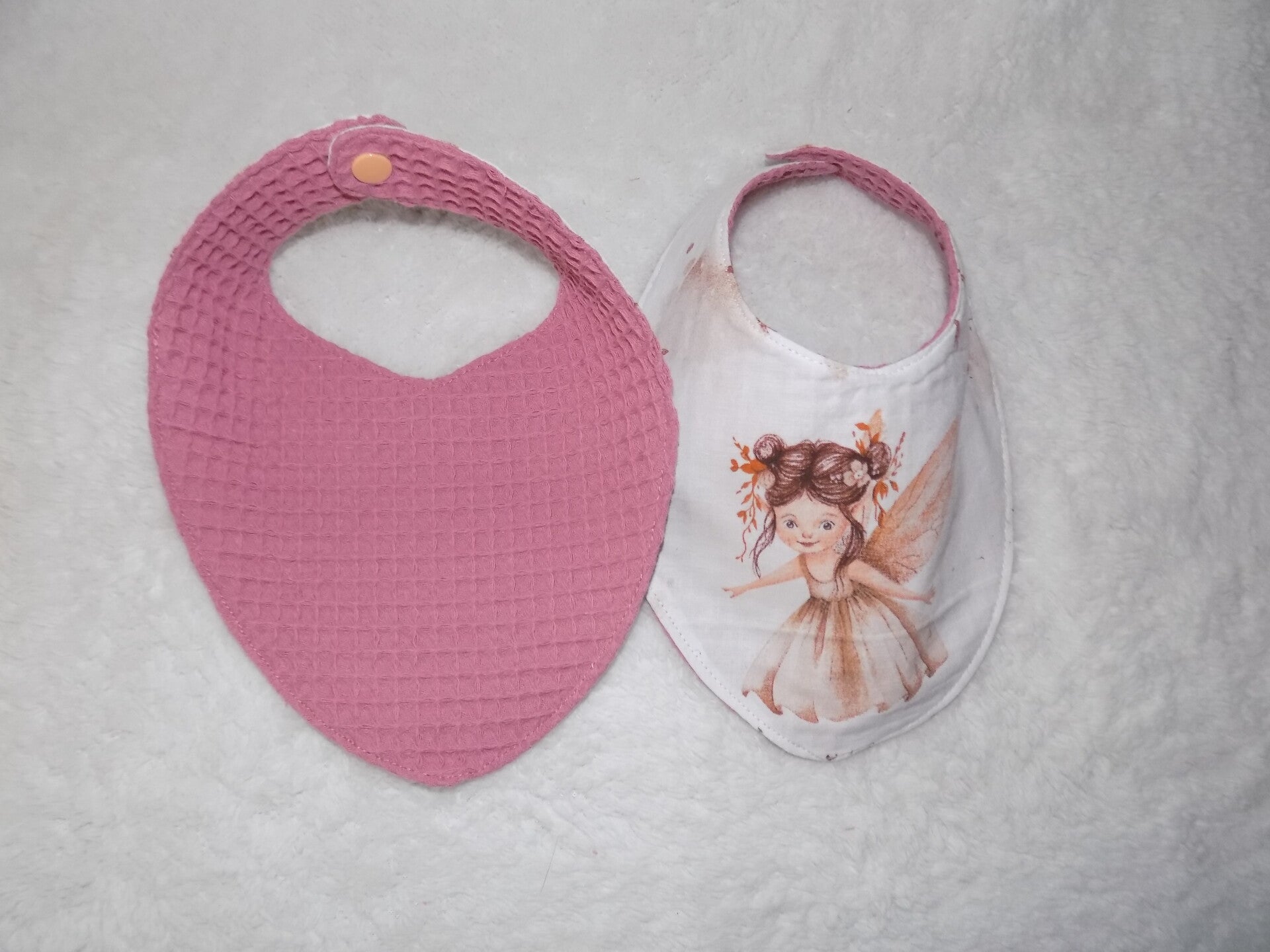 Lot de deux bandana bavoirs en tissu 100% coton certifié okéo-tex et tissu éponge de couleur vieux rose