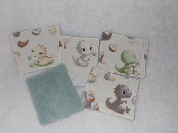 Lot de 5 lingettes lavable en tissu 100% coton certifié okèo-tex et tissu éponge de bambou de couleur vert menthe