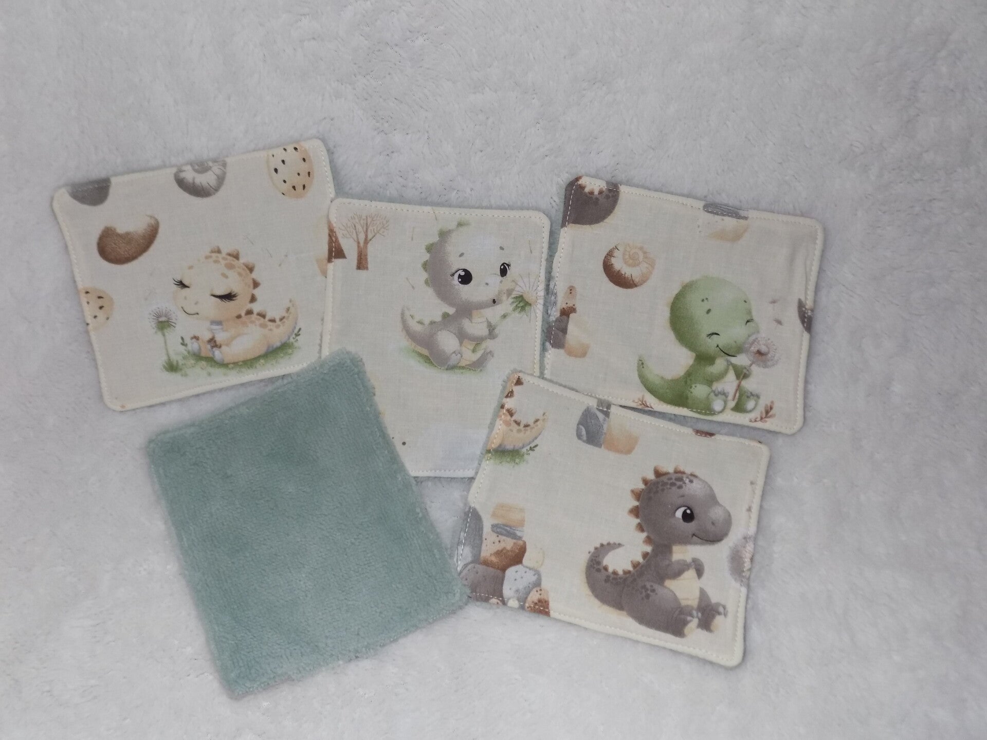 Lot de 5 lingettes lavables en tissu 100% coton certifié okéo-tex et tissu éponde de bambou de couleur vert menthe