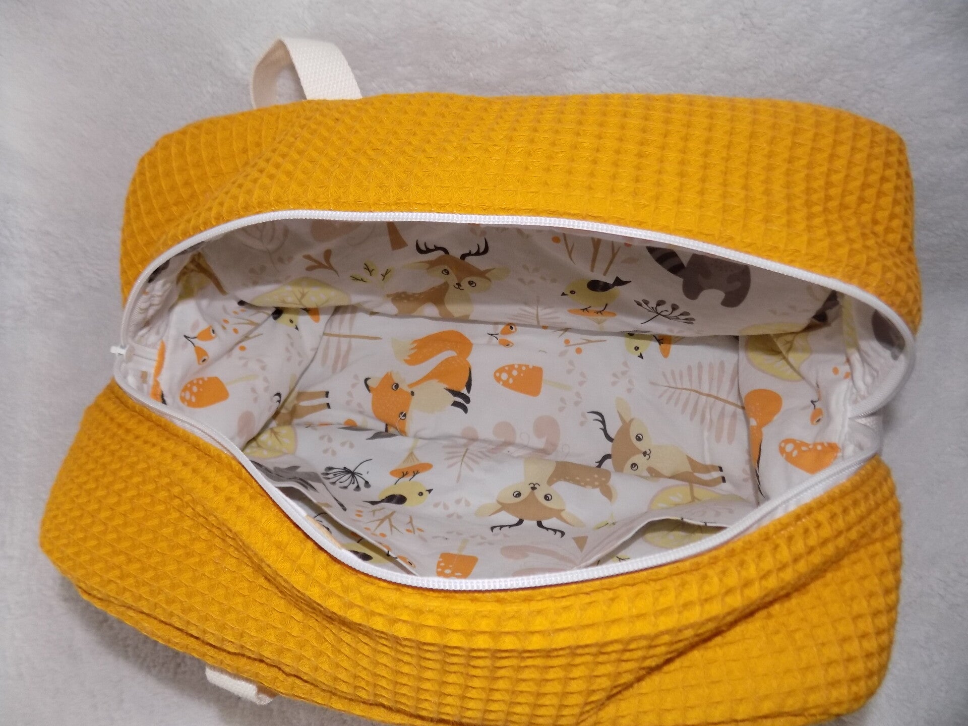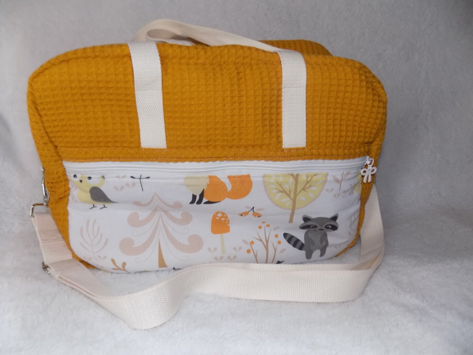 Sac à langer grande taille en tissu 100% coton certifié okéo-tex et tissu gauffré de couleur ocre